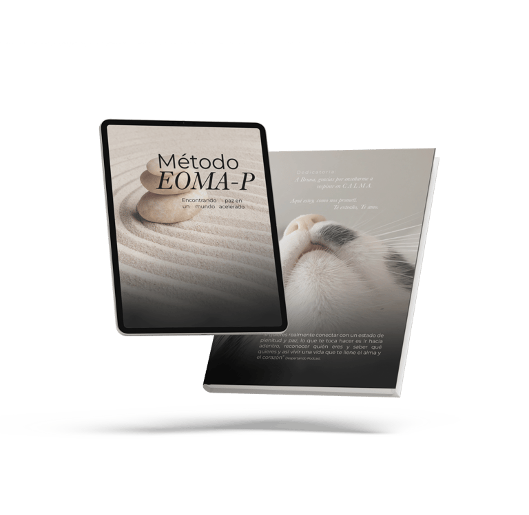 Por eso nació el Método EOMA-P: una guía práctica para recuperar calma, claridad y conexión interior en medio del día a día. A través de pasos sencillos y ejercicios cortos, este método te ayuda a pausar, ordenar lo que sientes y lo que piensas, y retomar tu rumbo con intención.